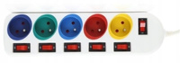 Przedłużacz listwa antyprzepięciowa 1,5m 5gniazd, 5x włącznik, biały
